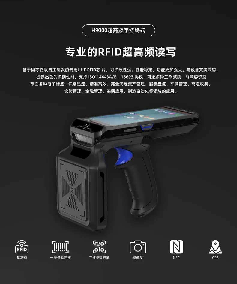H9000 is an industry-leading RFID data collector with powerful features and superior performance. The core platform components use high-performance and highly integrated RFID reader chip, integrated analog RF front-end and baseband digital signal processing module and other functions.