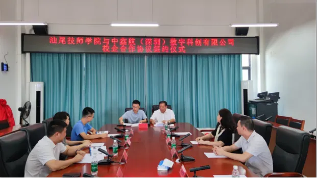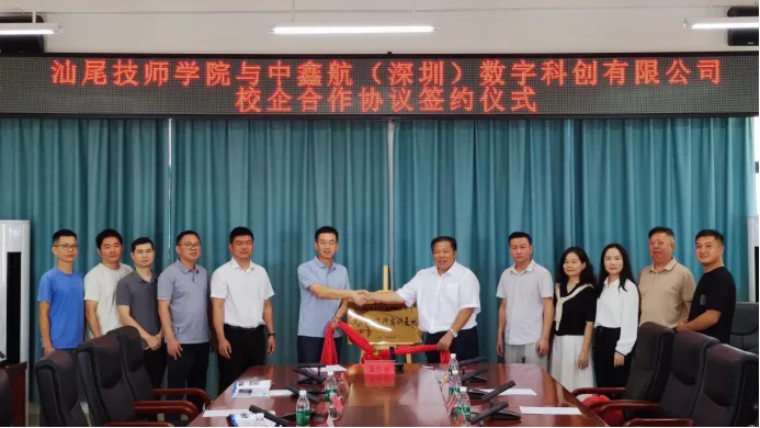 En la mañana del 27 de septiembre, el Instituto Tecnológico Shanwei y Zhongxinhang (Shenzhen) Digital Science and Technology Company Limited celebraron una ceremonia de firma de un acuerdo de cooperación escuela-empresa. Zhao Baojiang, presidente del Instituto Tecnológico de Shanwei, y Lin Zhishun, presidente de Zhongxinhang (Shenzhen) Digital Science and Technology Co.