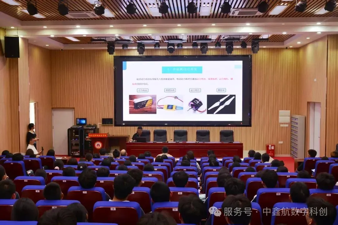 活动现场,全体师生认真聆听科普课程,中鑫航培训部总负责人王皓详细讲解无人机分类、无人机系统组成、多元应用场景,还针对无人机培训考试、安全飞行规范、行业职业发展等大家关心的问题进行细致解答,用通俗易懂的语言和真实案例,揭开无人机科技的神秘面纱,让师生们对无人机行业有了全面深入的认知。